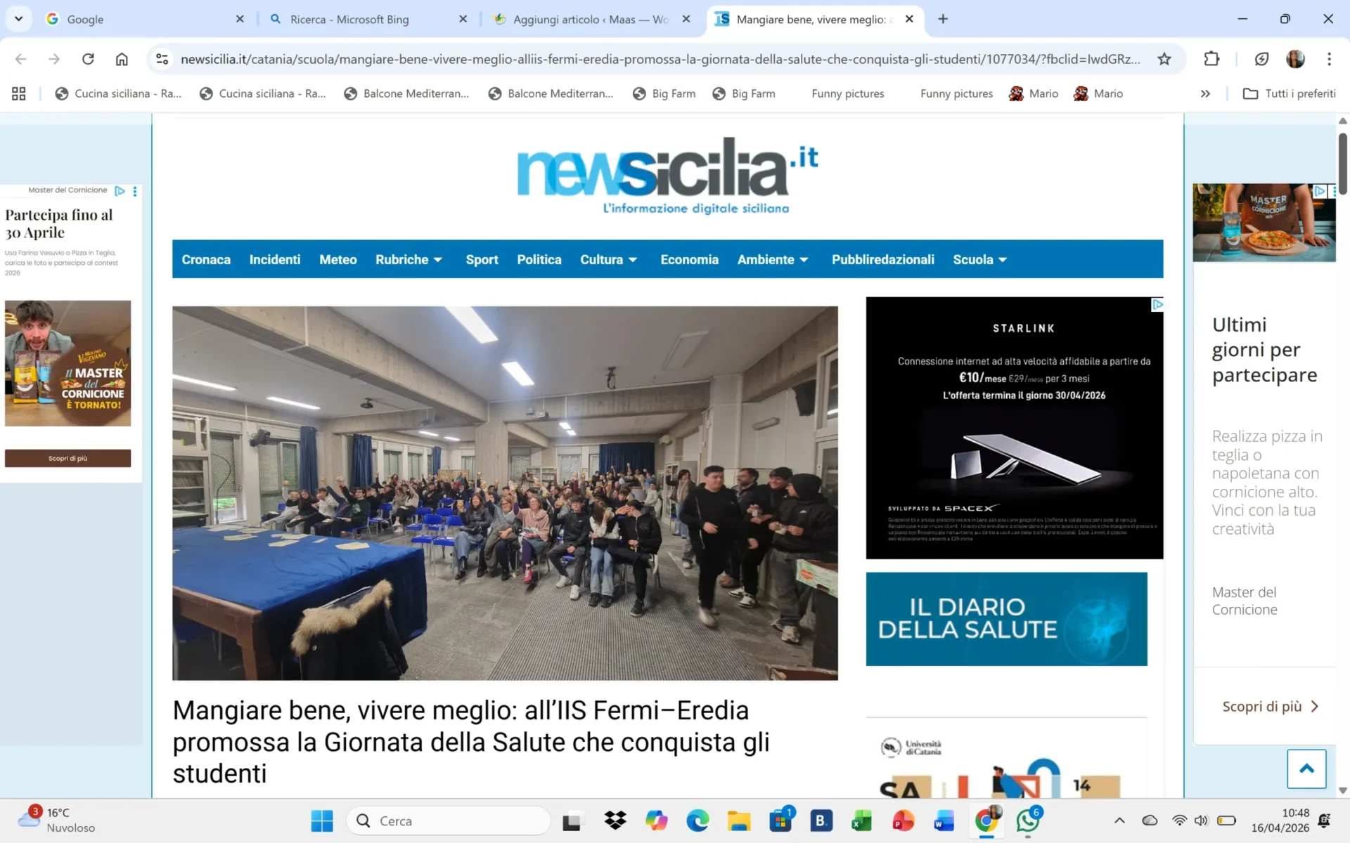 L’iniziativa, promossa e sostenuta con particolare attenzione dalla Dirigente scolastica prof.ssa Giusy Lo Bianco, da sempre sensibile ai temi della salute e del benessere degli studenti, ha rappresentato un importante momento di formazione e sensibilizzazione, coinvolgendo numerose classi in presenza e, per altre anche in collegamento online. Le due giornate si sono svolte con grande partecipazione ed entusiasmo, grazie anche al contributo degli esperti del progetto: la prof.ssa Leda Morana, esperta e responsabile scientifica del progetto, da tempo impegnata nella formazione e sensibilizzazione delle sane abitudini alimentari dei giovani, il Tecnologo Alimentare Emanuele Lunelio, della ditta Lunelio’s assieme al padre produttori di frutta di IV Gamma, e la dott.ssa Simona Puglisi, che hanno guidato gli studenti in un percorso educativo ricco di contenuti e spunti di riflessione. Nonostante molte delle tematiche trattate rientrino già nei programmi di alcuni indirizzi di studio, l’interesse e l’attenzione dimostrati dagli studenti sono stati particolarmente elevati. I ragazzi hanno seguito con attenzione gli interventi e partecipato attivamente ai momenti di confronto, dimostrando curiosità e desiderio di approfondire aspetti legati alla propria alimentazione quotidiana. Al centro degli incontri, temi di grande attualità e rilevanza: la sana alimentazione e l’importanza di uno stile di vita equilibrato secondo i principi della Dieta Mediterranea, la lettura consapevole delle etichette alimentari, la conoscenza dei prodotti di IV Gamma e delle loro tecnologie di lavorazione, oltre alla riflessione sul valore nutrizionale della frutta e sul ruolo delle scelte quotidiane per il benessere personale. Momento particolarmente significativo è stato quello conclusivo delle giornate, quando, al termine della formazione, gli studenti hanno potuto partecipare a un’esperienza concreta: la distribuzione di frutta fresca di IV Gamma durante la pausa ricreativa. Un gesto condiviso di forte valore educativo, che ha trasformato la ricreazione in un’occasione di assaggio, scoperta e promozione di una merenda più sana. L’iniziativa si inserisce in un percorso più ampio promosso dal MAAS, che da tempo porta avanti progetti nelle scuole con l’obiettivo di incentivare il consumo di frutta come alternativa salutare alle merende tradizionali, spesso ricche di zuccheri e grassi. Le giornate della salute al Fermi Eredia hanno così dimostrato come sia possibile unire teoria e pratica, formazione e esperienza diretta, rendendo gli studenti protagonisti di un cambiamento concreto nelle proprie abitudini alimentari. Un progetto che guarda al futuro e che continuerà con ulteriori attività, tra cui visite guidate presso la struttura del MAAS e nelle aziende ortofrutticole del territorio, per permettere ai ragazzi di conoscere da vicino la filiera agroalimentare e riscoprire il valore dei prodotti locali. La “Giornata della Salute” si conferma quindi non solo come un evento formativo, ma come un passo importante verso la costruzione di una cultura del benessere nelle scuole, dove anche la pausa ricreativa diventa un momento educativo, capace di orientare i giovani verso scelte più sane e consapevoli.